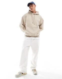 Pull&Bear Front Graphic Printed Hoodie In Stone For Men Neutral