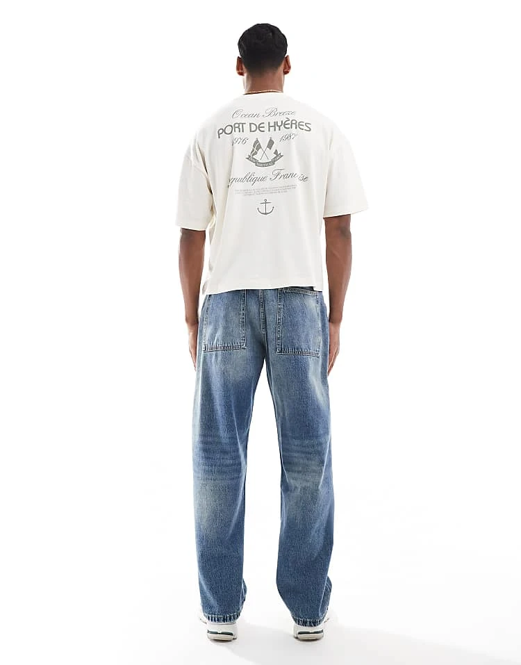 Non-stretch denim: mid-blue wash